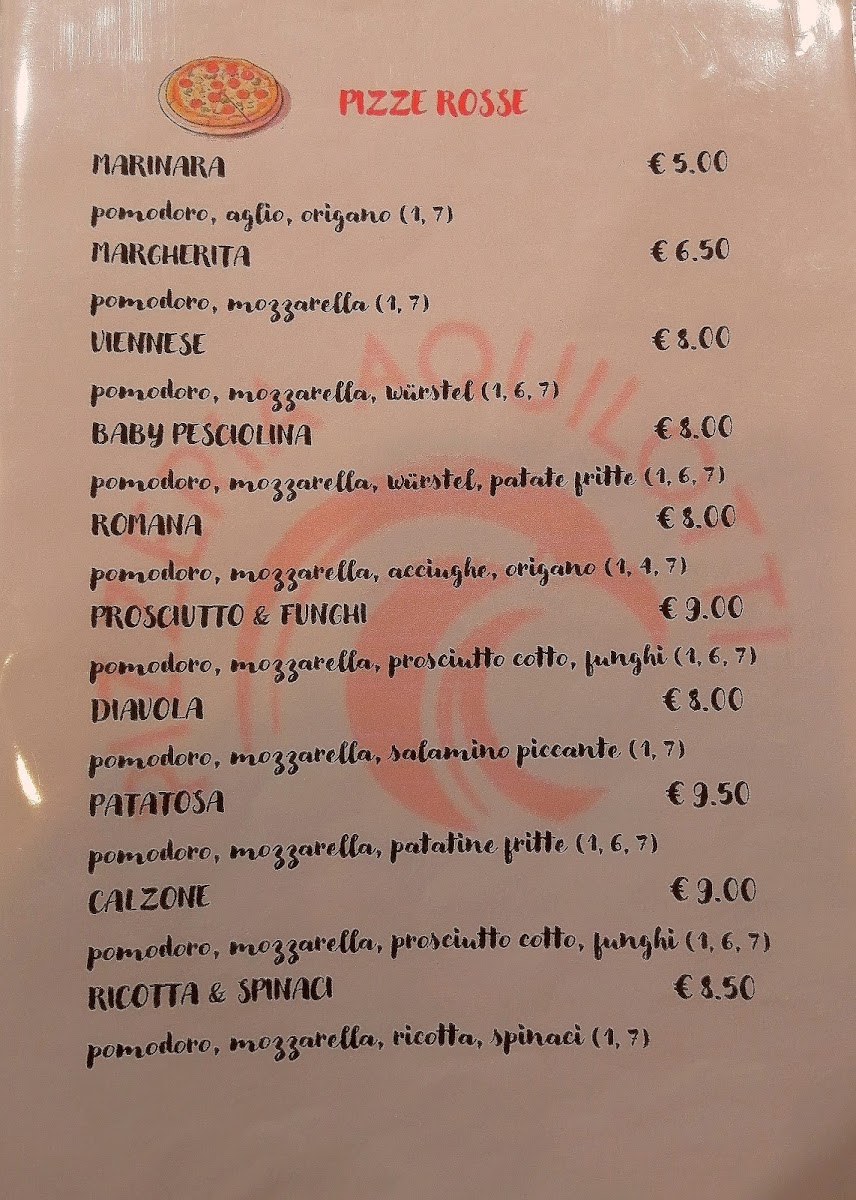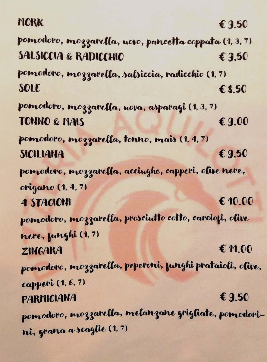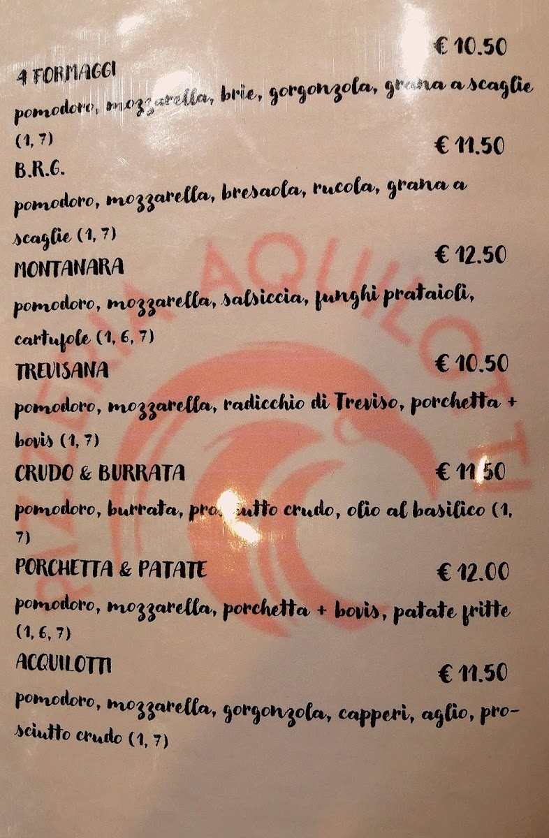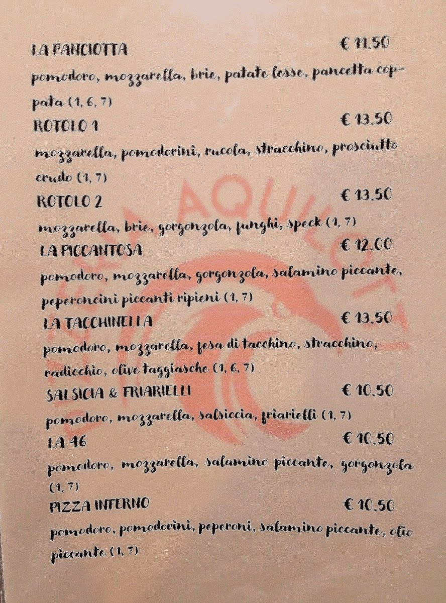 Pizzeria Aquilotti Menu