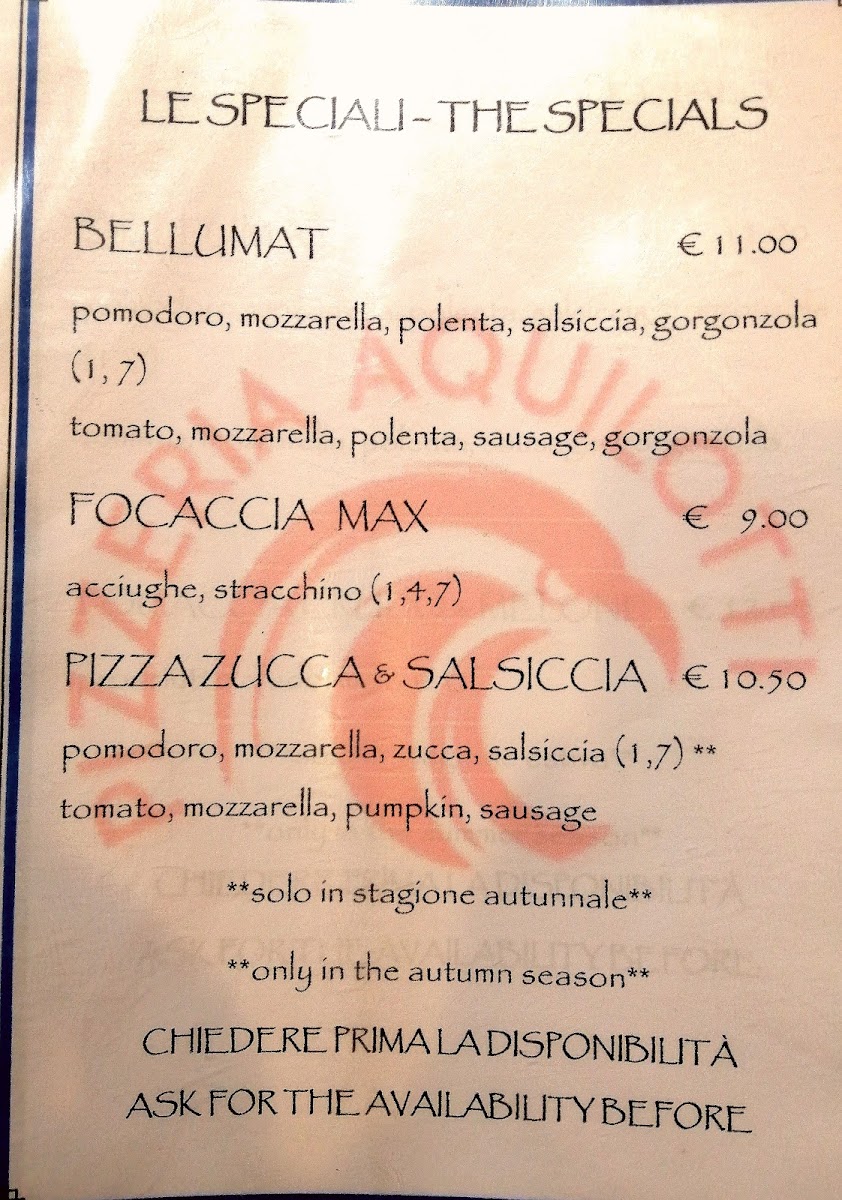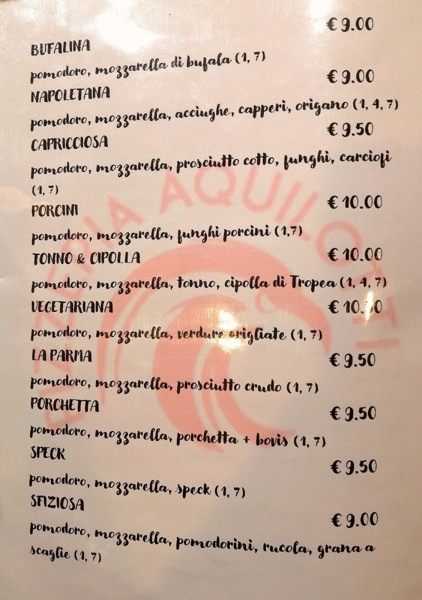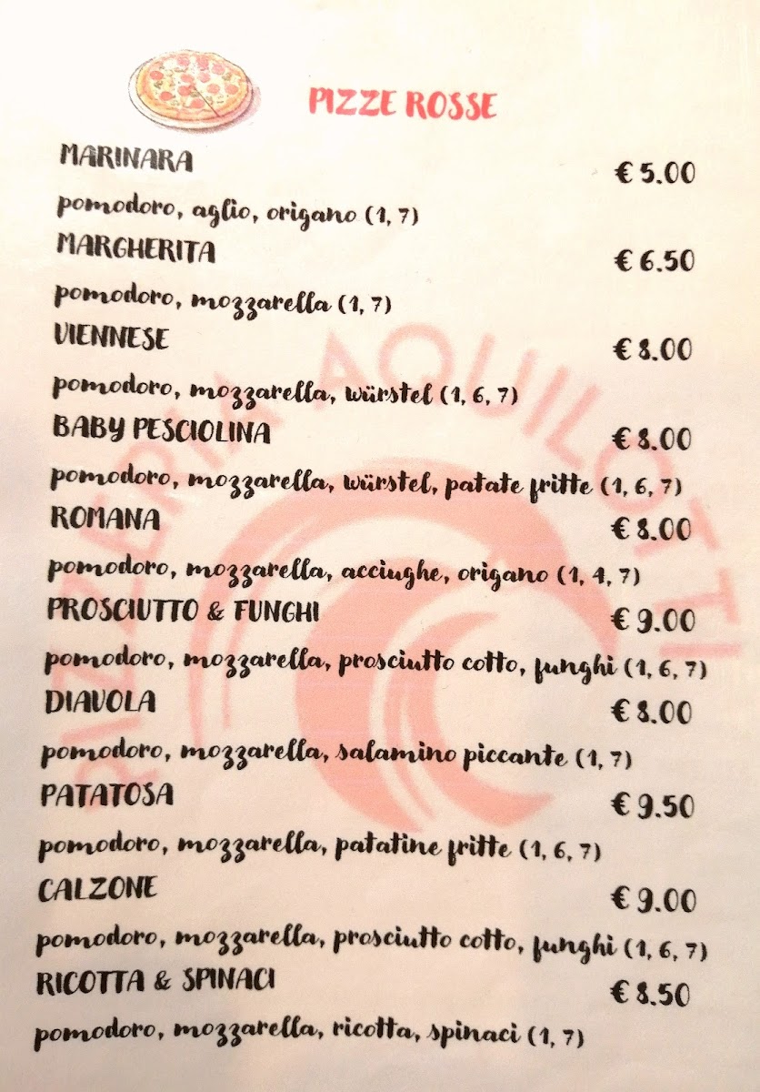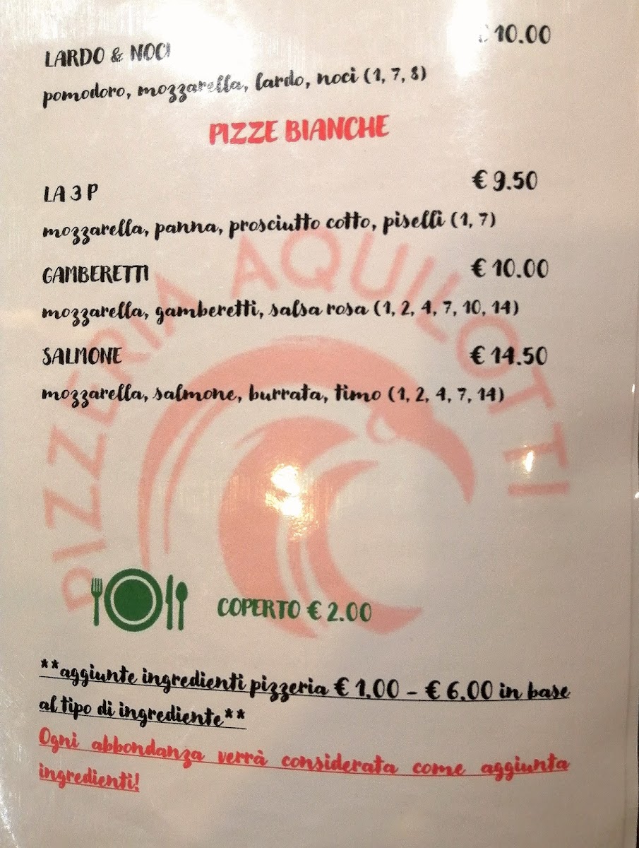 Pizzeria Aquilotti Menu